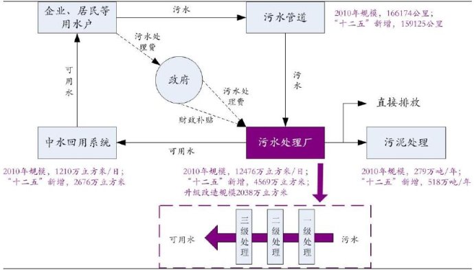 (2) 污水管道從2010年的16億公里上升到31億公里,污水供給量會相應提高,小城鎮污水處理市場抬頭。