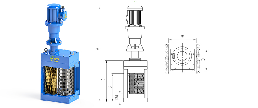 環創單鼓渠道式粉碎型格柵,切割區包含兩組獨立刀片軸和一個不銹鋼無軸轉鼓,增大了過流量,配合不同類型的安裝支架,適合中高流量的渠道或泵站安裝使用。